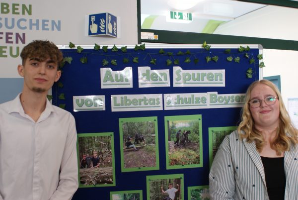 Unter der Leitung von Frau Sabrina Zeller und Frau Constance Gennutt präsentierten Schüler der 10. Klassen ihre Projektarbeiten zum Thema „Rote Kapelle“, die im Jahr 2025 auf dem Gelände von Schloss und Gut Liebenberg erstellt wurden.