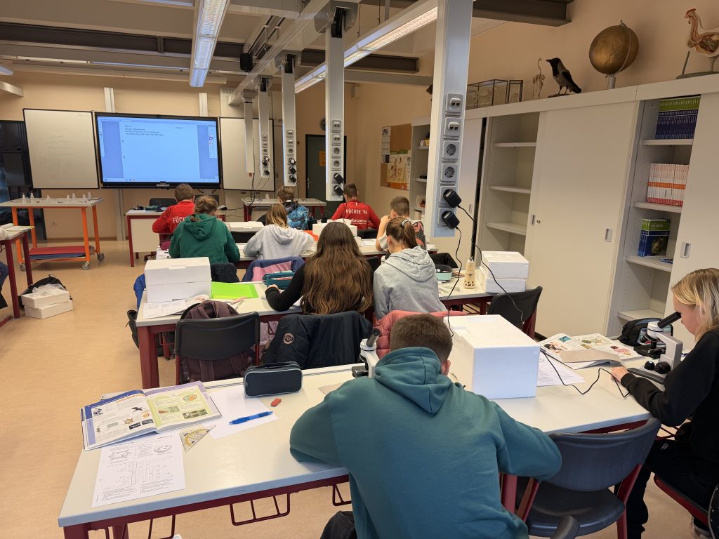 Am 3. und 4. Dezember 2025 fand in den Klassen 7a und 7b ein spannender Projekttag zum Thema Mikroskop statt. Die Schülerinnen und Schüler hatten die Möglichkeit, in die faszinierende Welt der Mikroskopie einzutauchen und selbst aktiv zu werden.